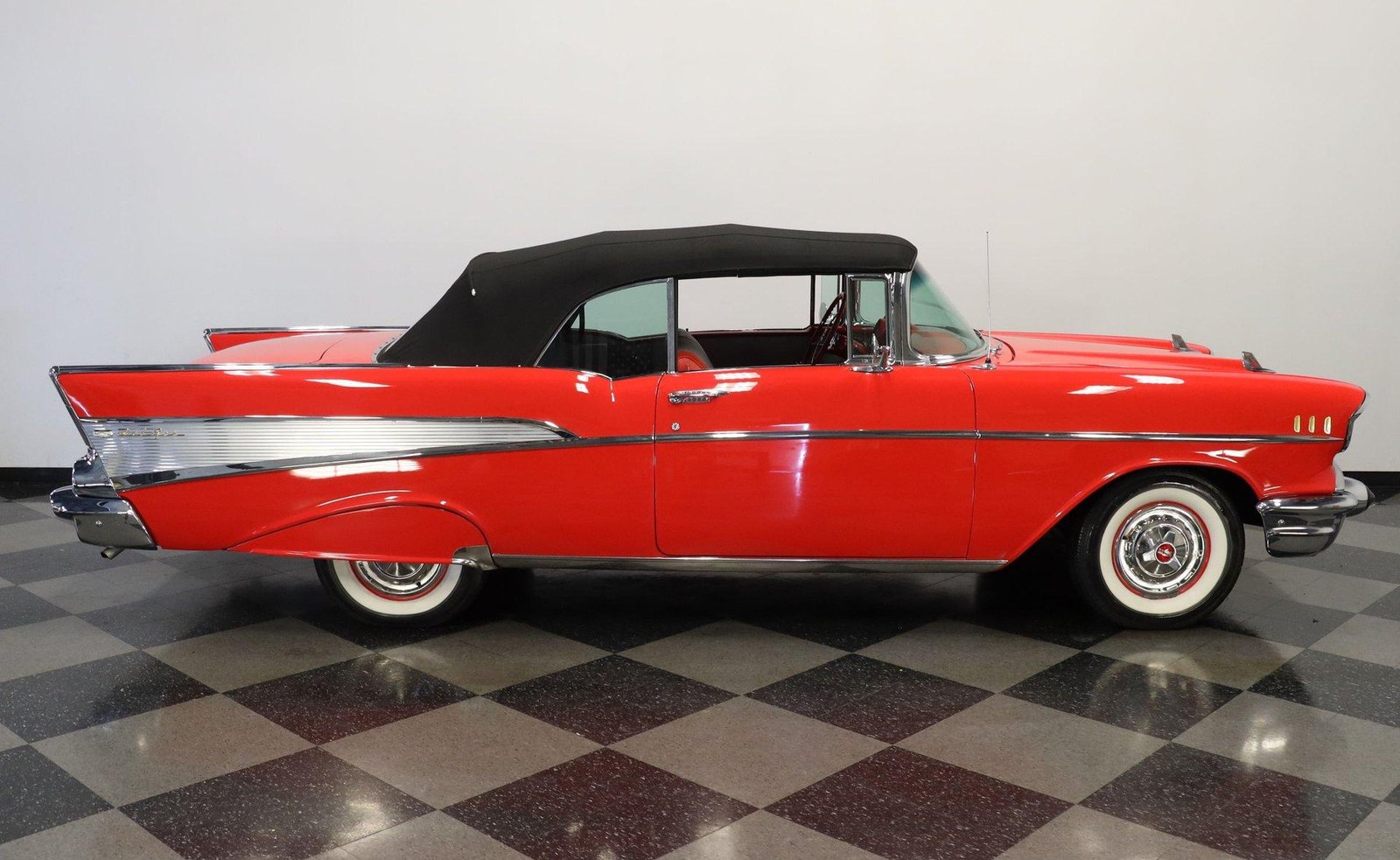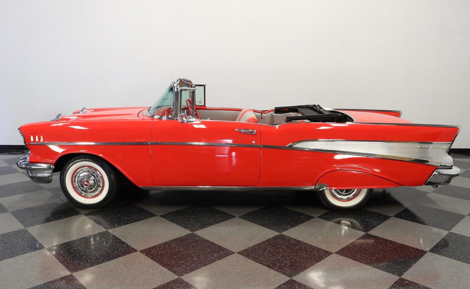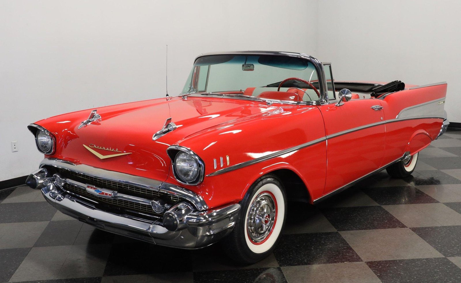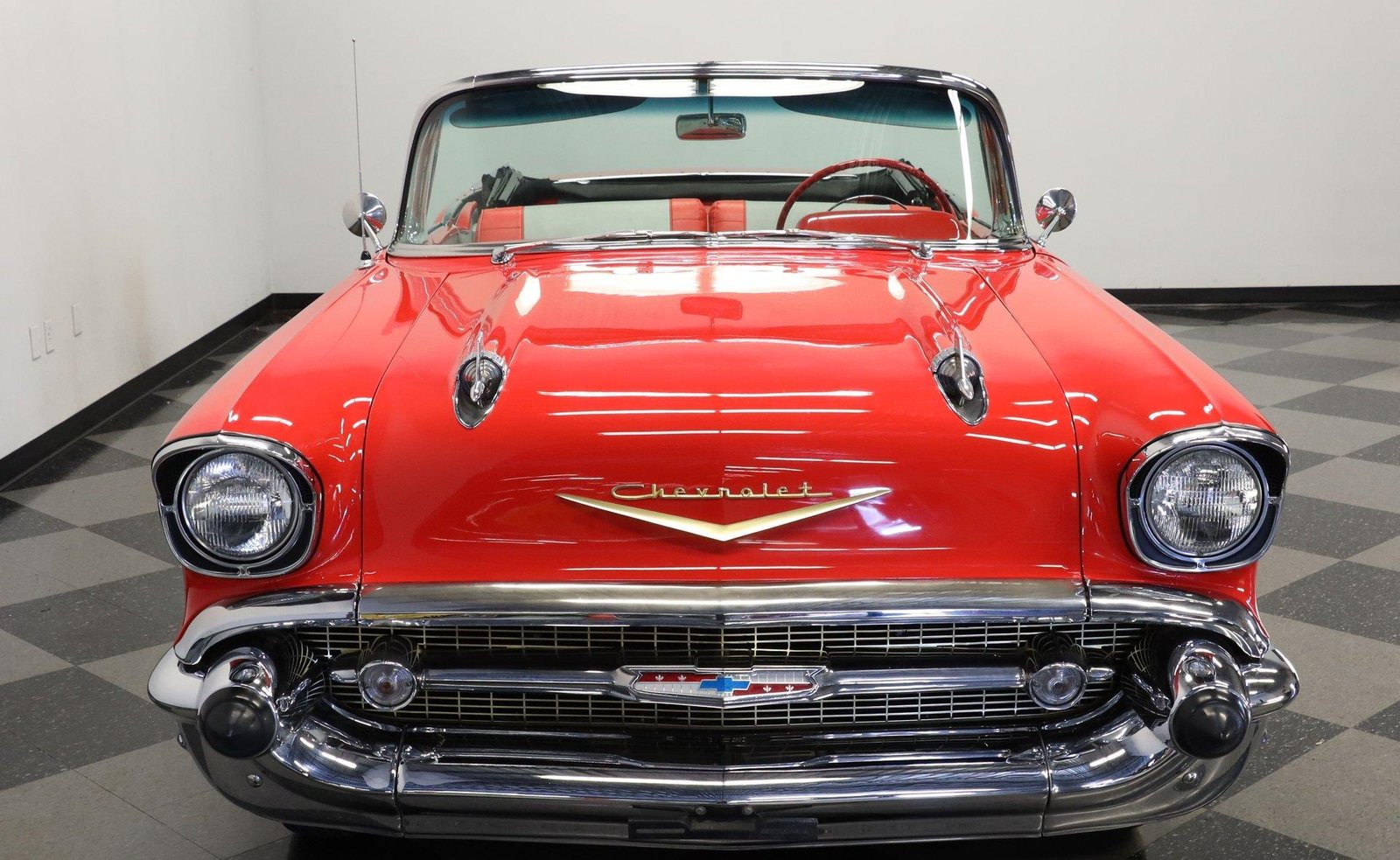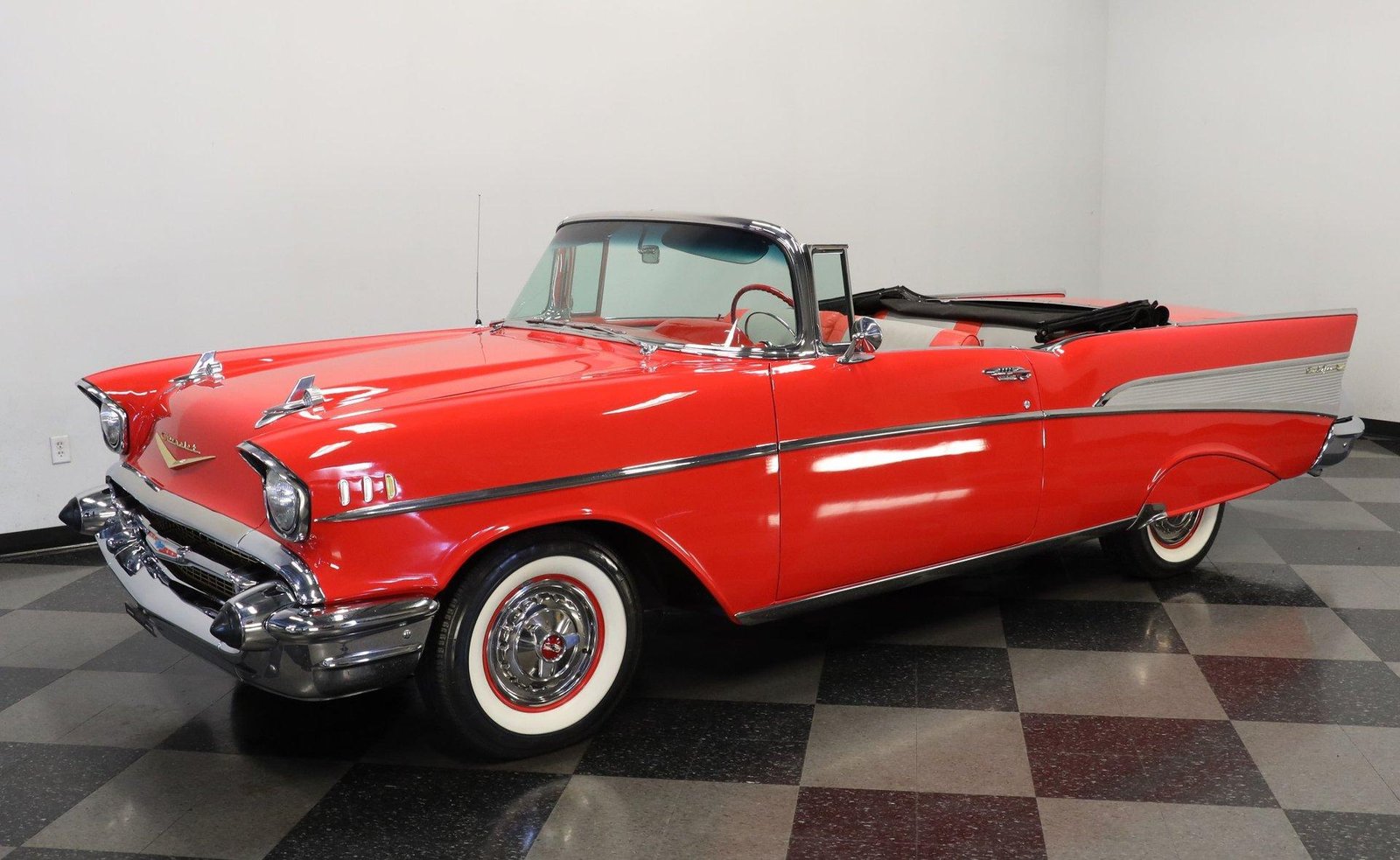 1957 Chevrolet BEL AIR CONVERTIBLEDetails Engine Size: 283 V8 Transmission Type: 3 Speed Manual Miles: 3653 Body Style: Convertible Body Colour: Matador Red Stock #: 3012